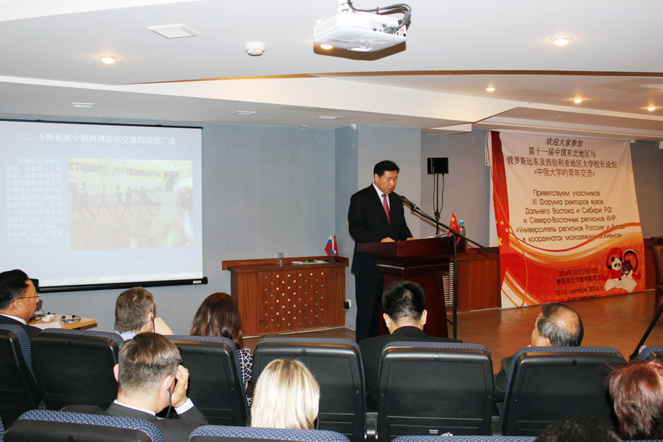 本网讯(记者 何振东)10月13日,由中国教育部和俄罗斯联邦教育署联合主办的第十一届中国东北地区与俄罗斯远东、西伯利亚地区大学校长论坛在俄罗斯布拉戈维申斯克国立师范大学开幕。beat365体育官方网站、黑龙江大学、佳木斯大学等32所东北地区高校校长、教育部代表、黑龙江省和吉林省教育机构领导以及俄罗斯太平洋国立大学、布拉戈维申斯克国立师范大学等24所俄罗斯欧洲部分、西伯利亚地区和远东地区高校的校长、俄教育科学部代表、俄发展合作部、俄远东地区的相关教育机关领导出席了论坛。