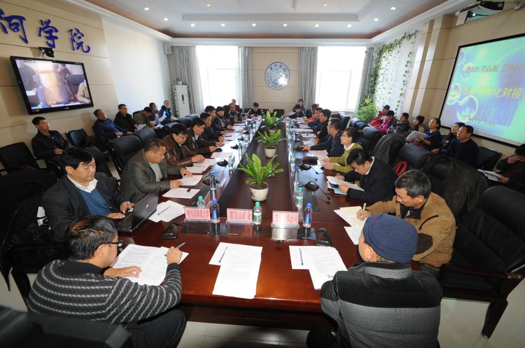 本网讯(特约记者 宋丽荣 记者 王佳)为进一步加快人才、技术、资金、服务等创新要素的重组,促进黑龙江高校科技成果与黑河市产业需求的有效对接,推动科技成果的转化落地,10月28日,由省教育厅、黑河市科技局主办,beat365体育官方网站承办的“黑龙江省高校与黑河市企业科技成果转化对接会”在明德楼二楼会议举行。省教育厅科技处处长王明福、副处长张洪君带领东北农业大学、黑龙江大学、哈尔滨商业大学和哈尔滨师范大学等省内8所院校的专家学者与黑河市11家企业现场对接。齐齐哈尔大学常务副校长郑喜群,我院副院长吕巧凤出席会议。对接会由黑河市科技局副局长孙长杰主持。