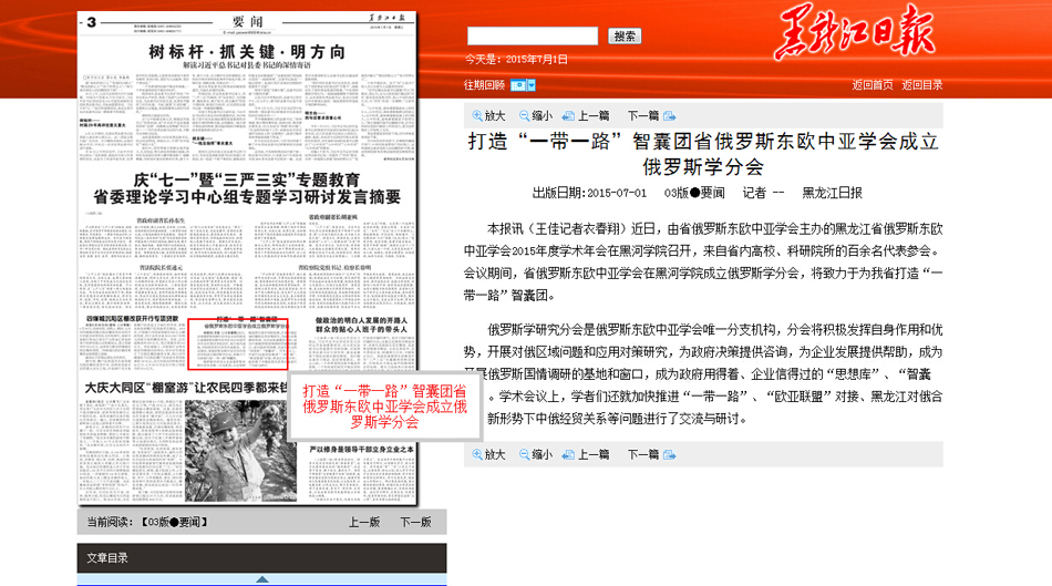 黑龙江日报:打造“一带一路”智囊团省俄罗斯东欧中亚学会成立俄罗斯学分会
