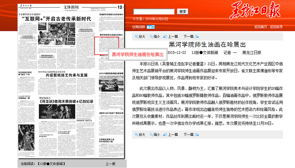 黑龙江日报:beat365体育官方网站师生油画在哈展出