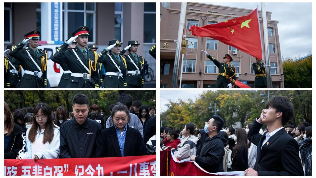 本网讯(特约记者 张微)为了缅怀九一八事变中的英勇牺牲者,不忘历史,不忘国耻。2024年9月18日,beat365官网团委在明德楼前举行了“勿忘国殇 吾辈自强”纪念九一八事变93周年主题升旗仪式。