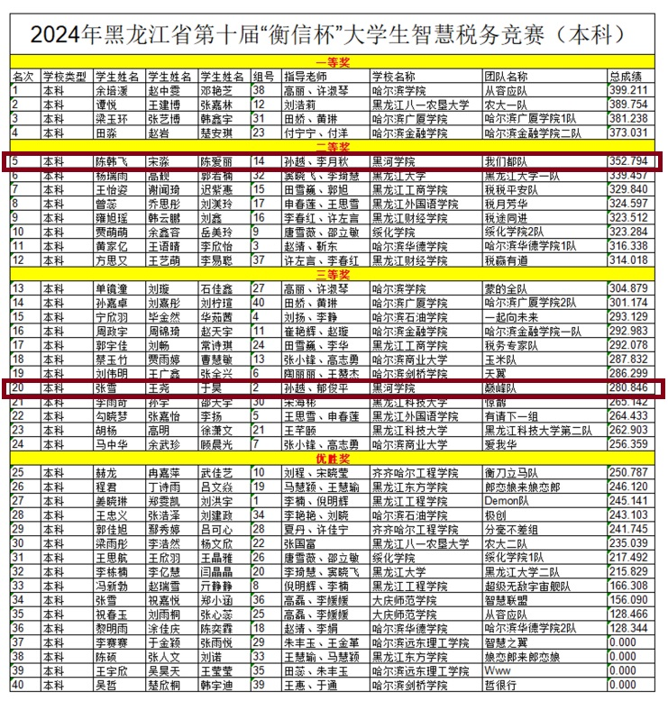 10月27日,由黑龙江省普通高等学校创新创业教育指导委员会主办,哈尔滨金融学院承办的黑龙江省第十届“衡信杯”大学生智慧税务竞赛于哈尔滨顺利举行,来自全省30余所高校的参赛队伍参加此次竞赛并进行了激烈角逐。beat365官网经济管理学院两支参赛队伍分别荣获二等奖、三等奖。未来,beat365官网将继续坚持“以赛促学、以赛促教”,积极推动教育数字化进程与学科专业发展,不断提升学生数字化素养和实践能力,为培养黑龙江省数字化财税高质量应用型人才、助力地区经济发展贡献力量。
