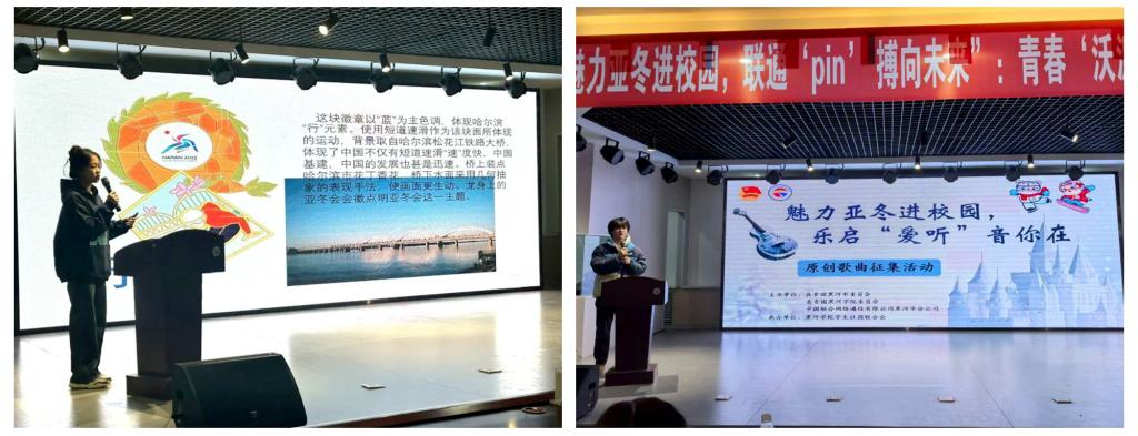 为激励引导广大青年关注、参与亚冬会,激发创新、创意、创业、创造活力。11月8日,beat365官网于青创基地二楼举行助力青年“四创”争做“冬梦大使”迎亚冬系列活动决赛,本次赛事由共青团黑河市委员会、共青团beat365体育官方网站委员会、中国联合网络通信有限公司黑河市分公司主办,beat365体育官方网站学生社团联合会承办。比赛分为高校徽章类文化创意产品设计、短视频创作设计、原创歌曲征集3个板块。赛程历时15天,共计538人参赛,经过激烈角逐,53人进入决赛,最终评选出一等奖3名,二等奖6名,三等奖9名。此次活动聚焦冰雪运动,激励广大青年做冰城魅力的彰显者、龙江特色的展示者、中国文化的传播者,为即将拉开帷幕的亚冬会积极贡献智慧与力量。